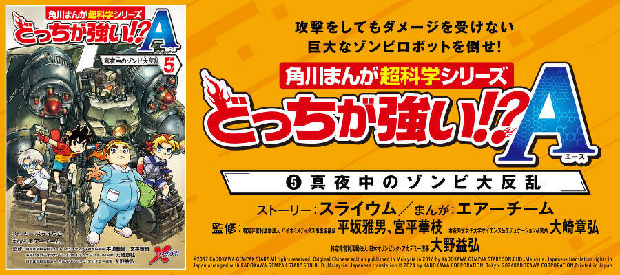 『どっちが強い!?A』は、シリーズおなじみのジェイクやルイス、レイン、ショーンたちXベンチャー調査隊が、ロボットに乗ってライバルたちと大迫力のバトルをくり広げる学習まんが。手に汗にぎる大迫力の物語を読み進めるうちに、科学やAI、プログラミングについての知識も自然と身に付きます。