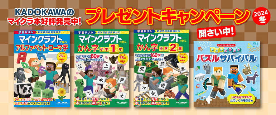 本ドリルは新学習指導要領に沿っており、マイクラの世界に触れながら、小学校で習う漢字やローマ字・アルファベットを身に着けることができます。