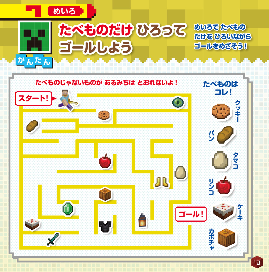たべものだけ ひろって ゴールしよう