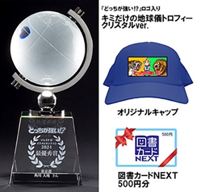 ●最優秀賞1名様 『どっちが強い!?』ロゴ入りキミだけの地球儀トロフィー クリスタルver.