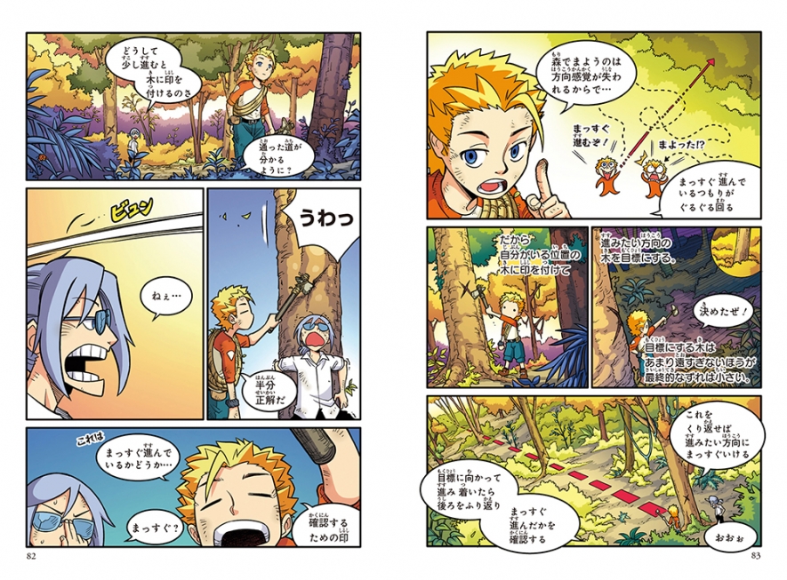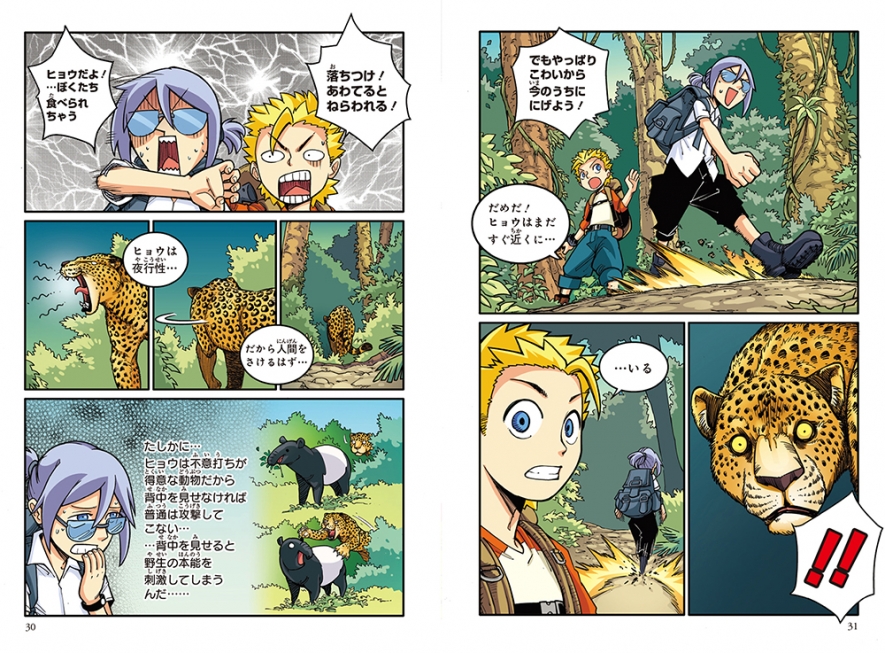 ジャングルや極寒の雪原など、日常では簡単に体験することができない場所に主人公たちが行き、その場に応じたサバイバル技術を使いながら、各地の生態系を学び環境問題に取り組みます。また実践的なサバイバル技術や生き物の生態を解説した読み物も収録し、多角的に自然と付き合っていける知識が身につくシリーズが新登場です!
