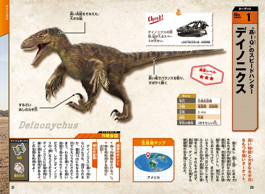 恐竜の生態やその時代の環境を検証し、どうすれば恐竜を人の手で捕まえることができるのかを考察します。数々の書籍を執筆、監修してきた古生物ライターの土屋健氏をブレインに、全58種の恐竜たちに立ち向かいます。