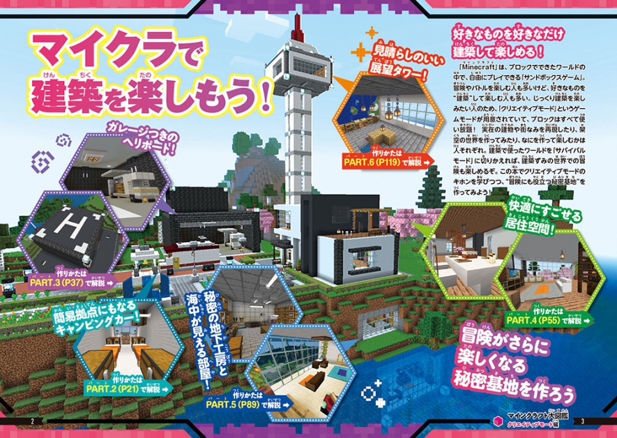 この本では、マインクラフトの世界で冒険がもっと楽しくなる、建築のキホンを完全ガイド!