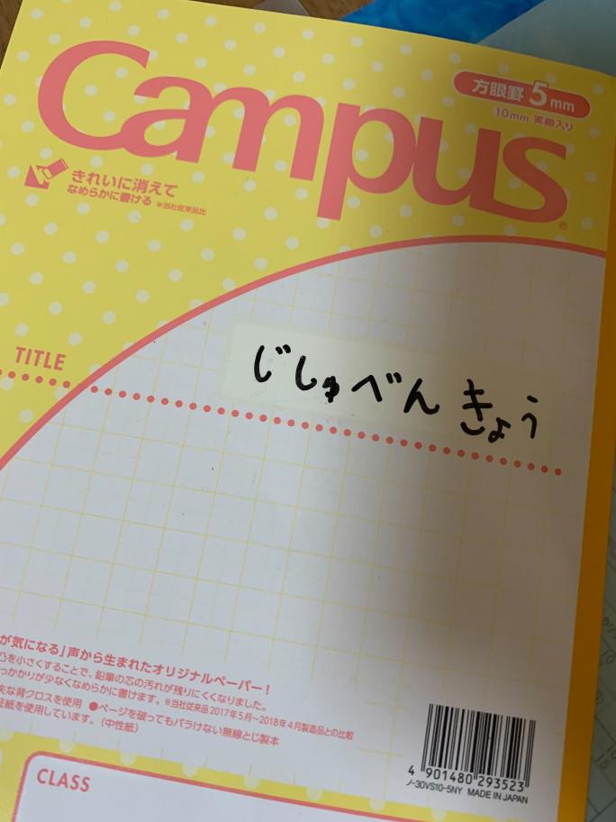 わが子の自主学習用ノート。まずは「自主勉強」を漢字で書けるようになってほしい……。