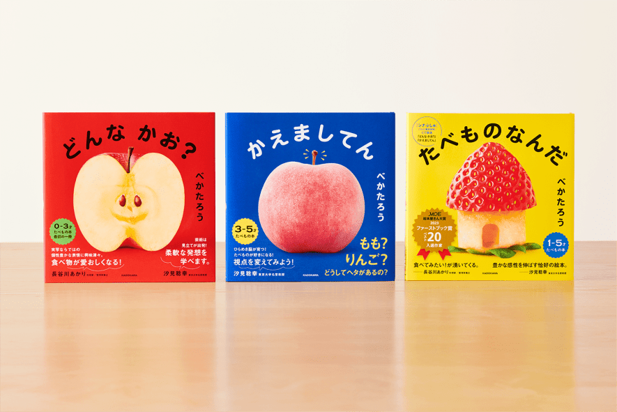 実写で食べ物絵本を制作する「本物で感じるたべもの絵本」シリーズとして展開し、続く2作目『かえましてん』も『シナぷしゅ』にて紹介いただきました。