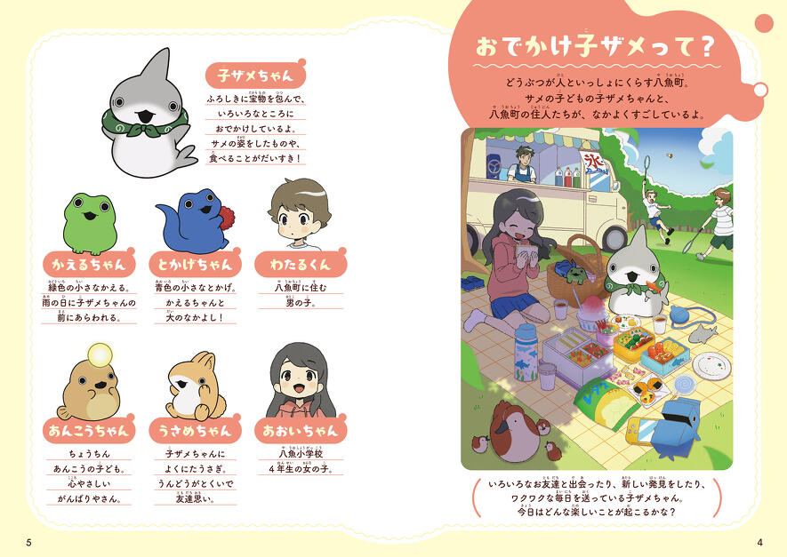 子ザメちゃんのおでかけの様子や、心あたたまるストーリーに癒されながら、誰でも楽しく学べます。