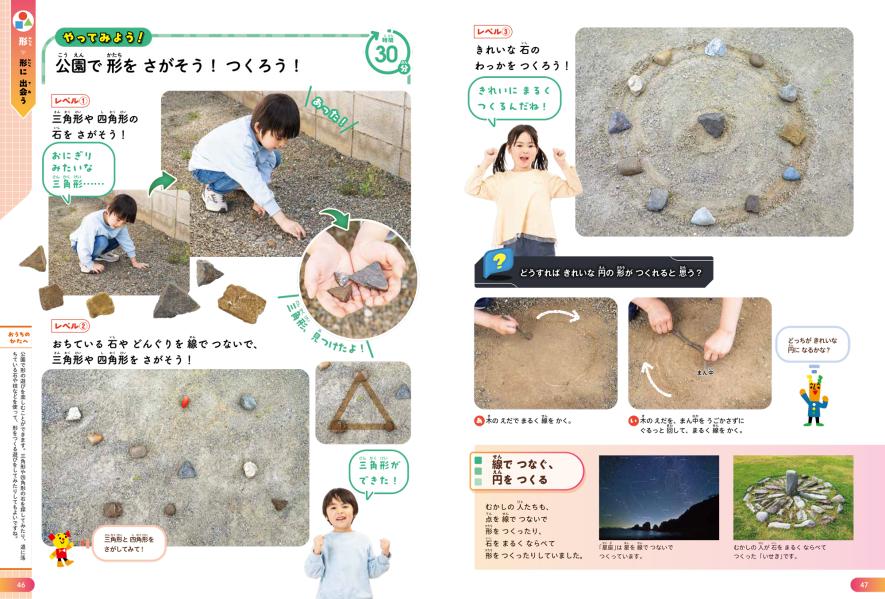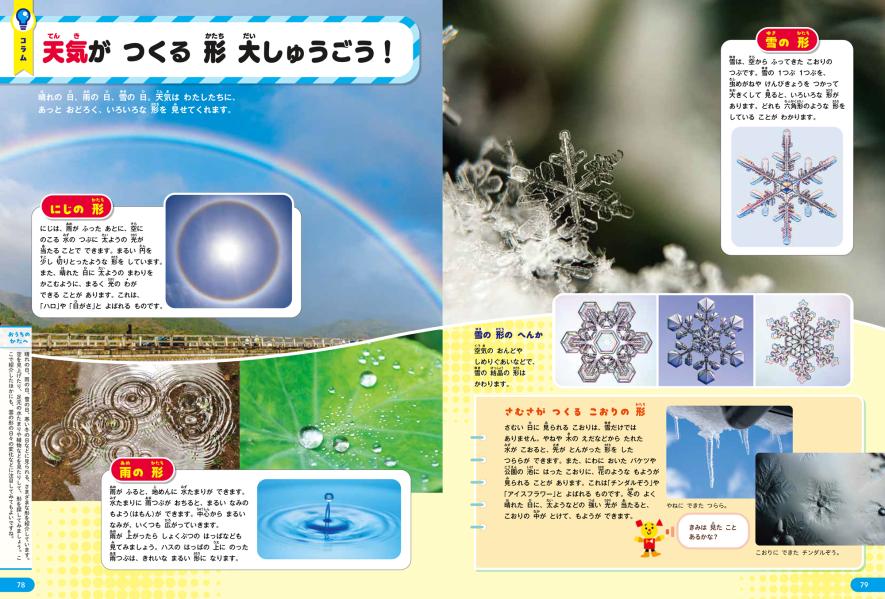 「生きものがつくる丸い形」や「天気が作る形」、「世界の数」など、見ているだけで楽しいコラムも多数掲載。生きものや身の回りのものから興味関心を引き出します。