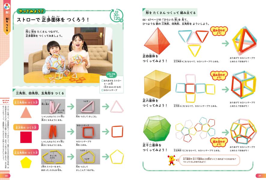 歩数で長さを測ったり、工作したり、パズルをしたりと、算数に関わるアクティビティを紹介しています。いっしょにからだを動かすことで、感覚的に算数の考え方を掴むことができます。