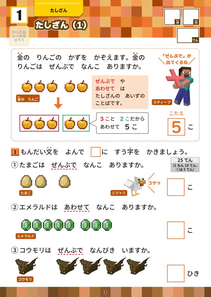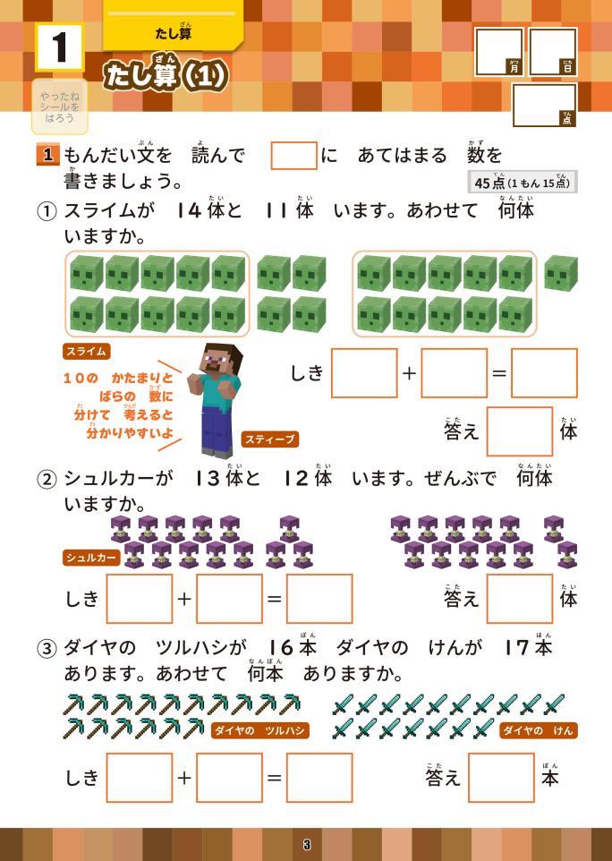 『学習ドリル マインクラフトで学ぶさんすう文しょうだい 小学1年』