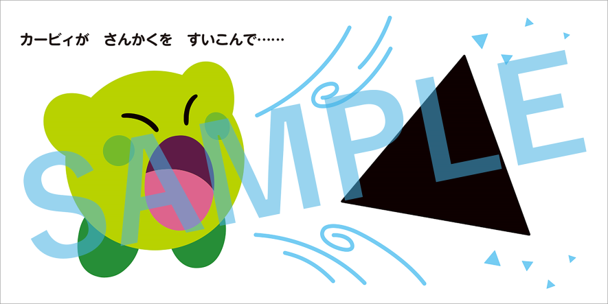 なんでも吸いこむカービィの特徴を生かし、カービィが丸や三角、四角といった月齢の低いお子さまが違いに気づき始める図形に次々と変身します。
