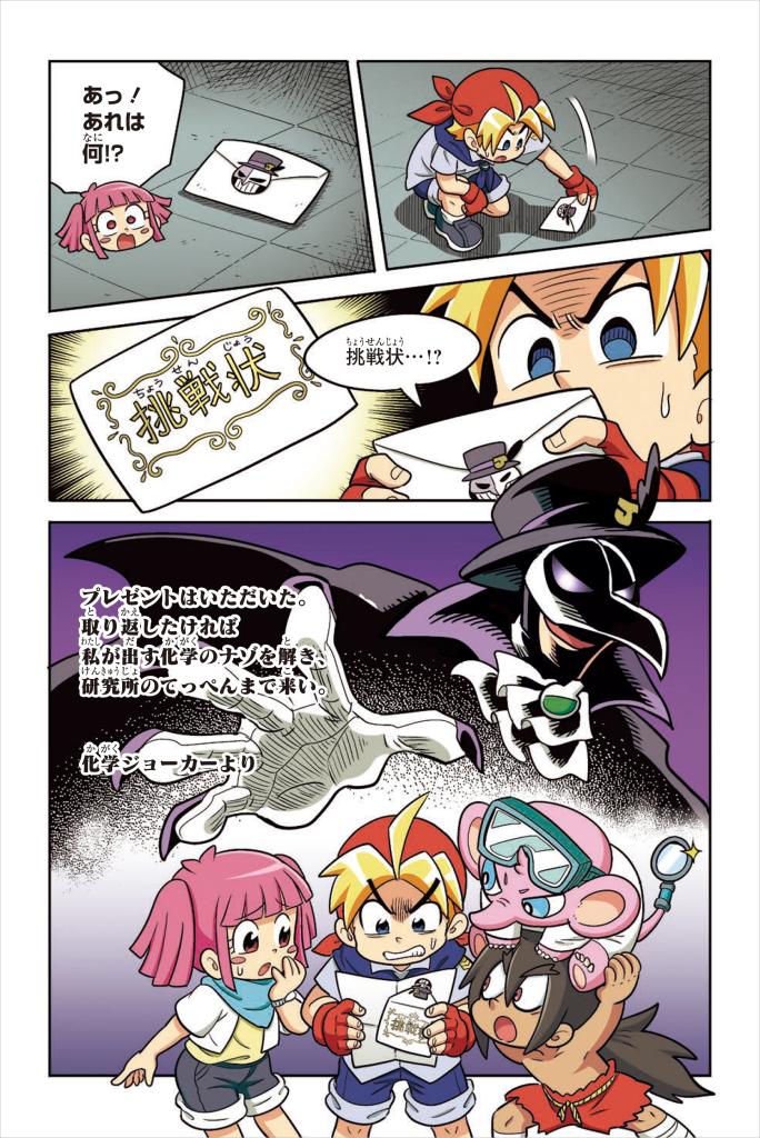 ダーウィン博士の誕生日パーティーの準備中に化学ジョーカーが現れ、プレゼントが消えた! 取り戻すには、化学ジョーカーが出題する化学のミッションをクリアするしかない。理科が大好きなできーる君の力を借りながら、空気や水、火、水溶液など身近なものにかくされたおもしろい化学のヒミツを解き明かし、ミッションクリアを目ざそう! ジェイクたちは無事にプレゼントを取り戻せるのか!?