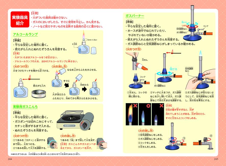 記事ページも充実! 各章末にはまとめとチャレンジ問題を掲載しており復習もバッチリ。また、「のびーる理科」シリーズで唯一実験器具紹介ページを盛り込みました! 学校の実験で使う基本的な実験器具の使い方などを図解でわかりやすく紹介しています。