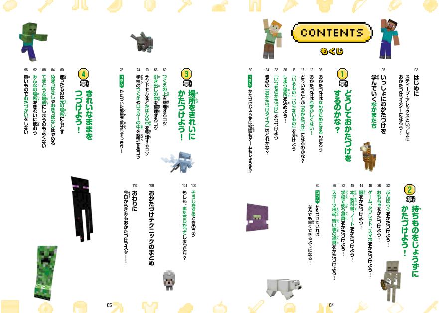大人気マインクラフトのキャラクターと一緒に、楽しくおかたづけを学べる本、