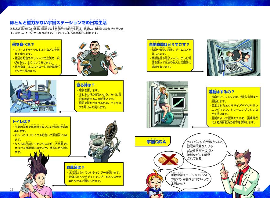 ▼宇宙飛行士の生活の様子や、宇宙空間に人間が出てしまった場合の影響など、さまざまな角度で宇宙空間について知ることができます。