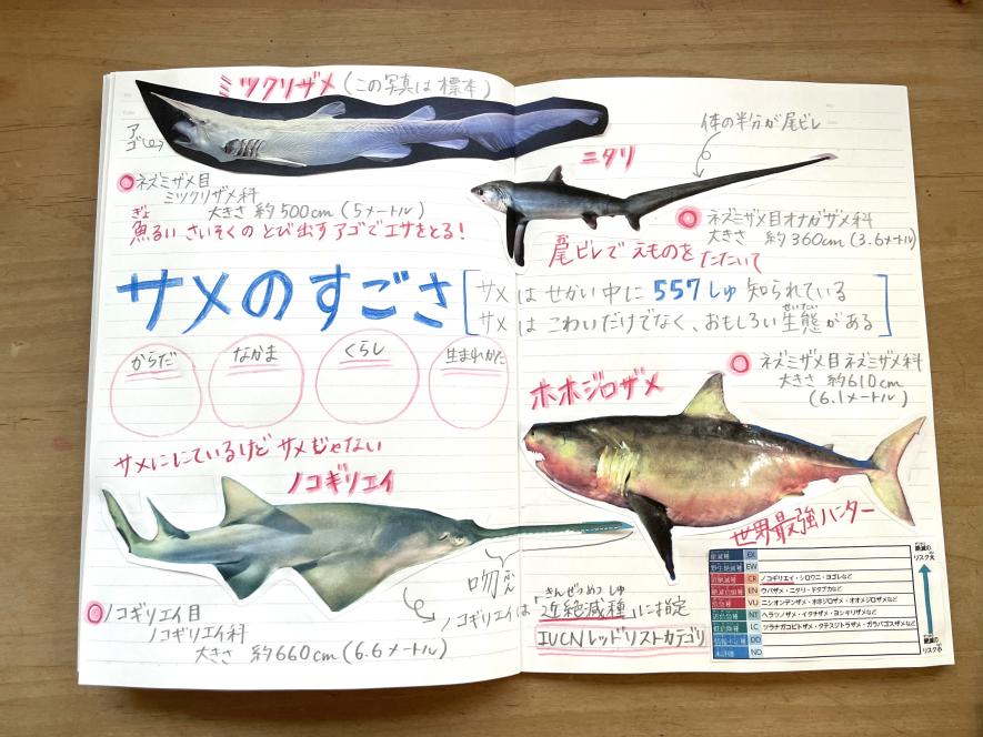 『サメすご図鑑』は貴重な写真で構成されているので、そのままコピーして切り貼りするだけで他には無いノートがつくれます!