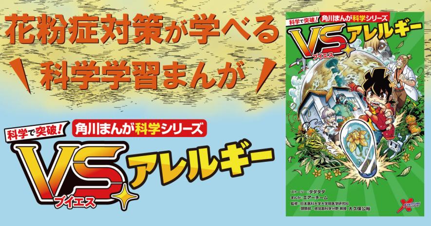 いよいよ春がやって来た! と同時にやって来るのがいまや子どもから大人までを悩ます花粉症。科学の知識であらゆるピンチを突破する角川まんが科学シリーズ『科学で突破! VS.アレルギー』は、そんな花粉症やアレルギーについて学べる学習まんがです。ハラハラドキドキのまんがを楽しみながら、アレルギー発症のメカニズムや花粉の種類、予防や治療法など役立つ知識が自然と身につく本書のポイントを紹介します。