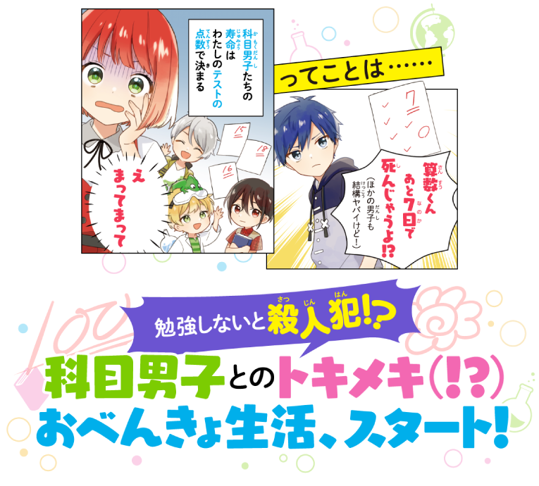 勉強がニガテなわたし・花丸 円が、算国理社英の教科書からうまれた5人の「科目男子」といっしょに、テストの点アップをめざして猛特訓!