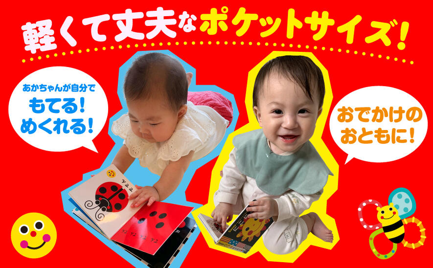 あかちゃんを釘づけにする内容はそのまま、通常版の約3分の1の軽さのボードブックになりました。