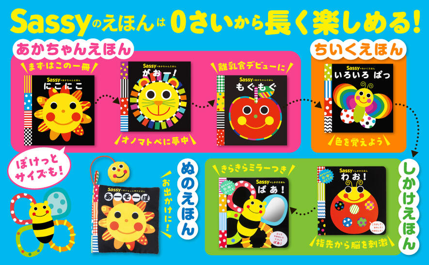 「初めてわらった」「見せるとほんとに泣き止む!」とママパパの間で大きく話題となり、累計180万部の大ヒットシリーズとなった「Sassyのえほん」。