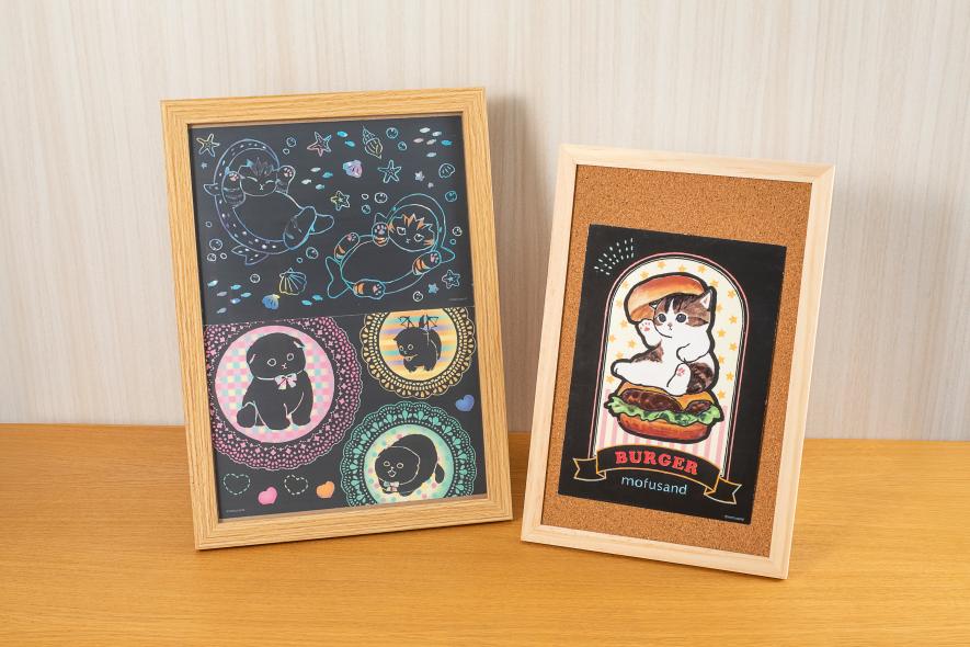 完成後も、かざったりながめたりして楽しめます。額縁に入れてかざれば、かわいらしいmofusandのアートが部屋をいろどってくれますよ♪