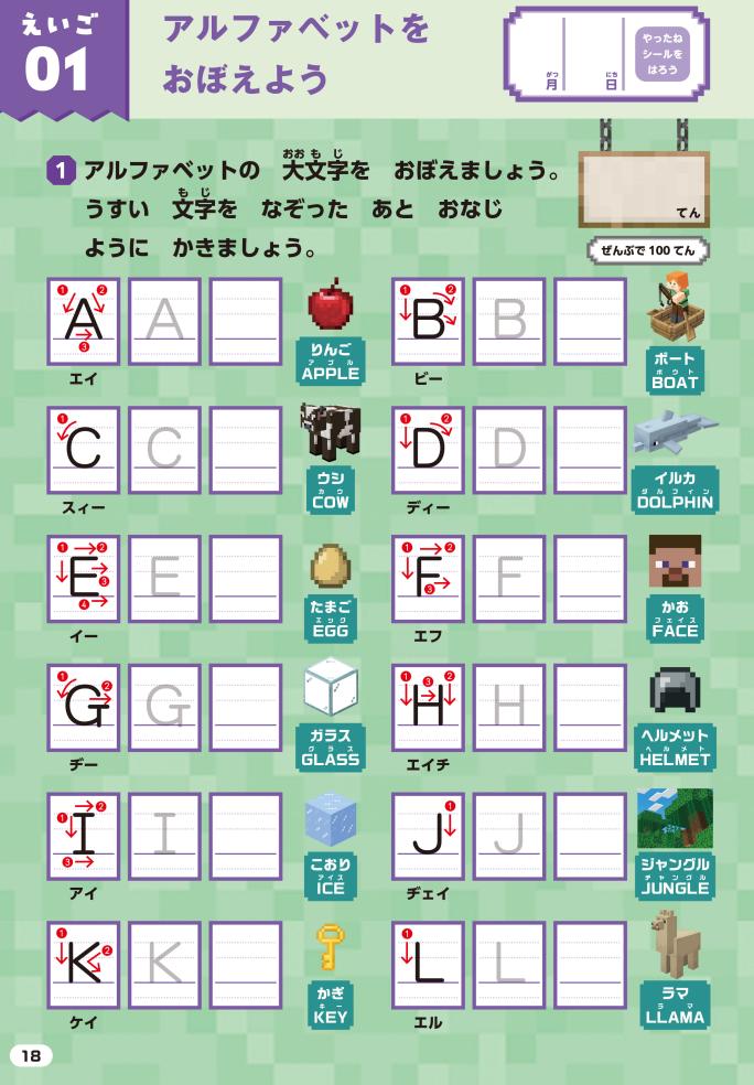 どの問題にもマイクラに登場するキャラクターたちやそのイラストが出てくるので、お子さまはマイクラの世界を楽しみながら、飽きることなくドリルに取り組むことができます。