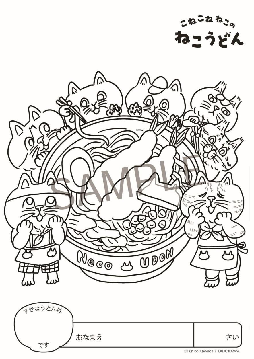 【重版御礼!】無料でダウンロードできるぬりえを3種プレゼント!『こねこねねこの ねこうどん』