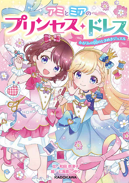 ドレスのデザインが大すきなアミと、かがみの国のプリンセス、ミアがまほうのかがみの力で出会いました。