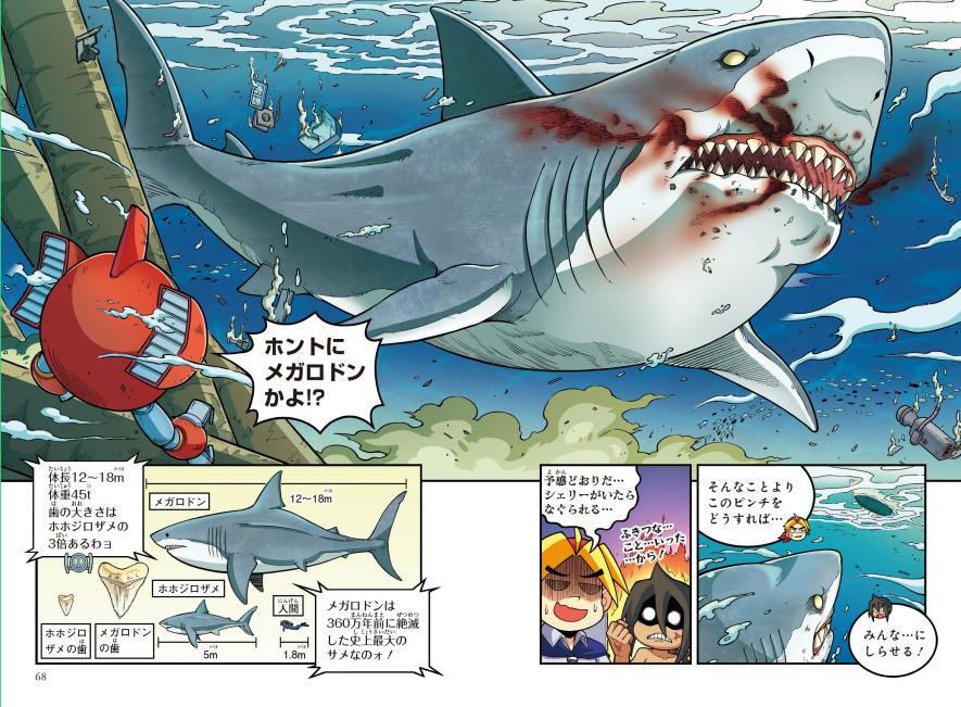 関連シリーズ累計580万部突破! 動物バトルを読むだけで、科学の知識が楽しく学べると話題の『どっちが強い!?』シリーズから、最新作「海の無敵チャンピオン 古代の超巨大ザメ」を9月18日(木)に発売しました。