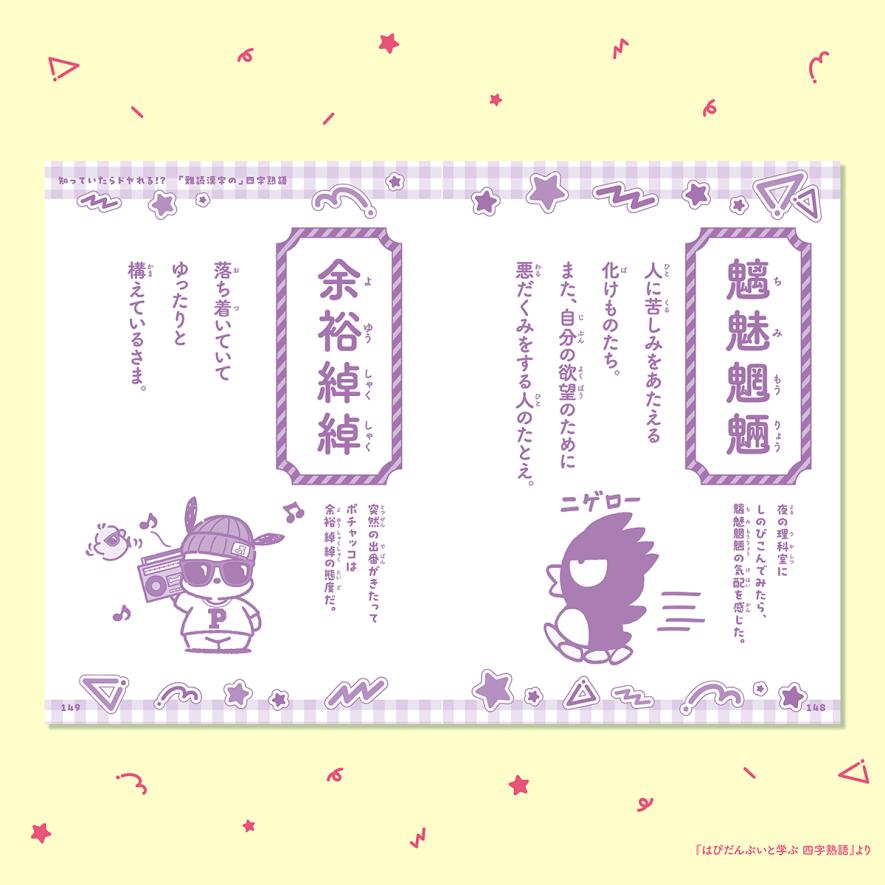 『はぴだんぶいと学ぶ 四字熟語』では、そんなかっこいい言葉や、「難読漢字の」四字熟語、「座右の銘にしたい」四字熟語なども紹介しています。