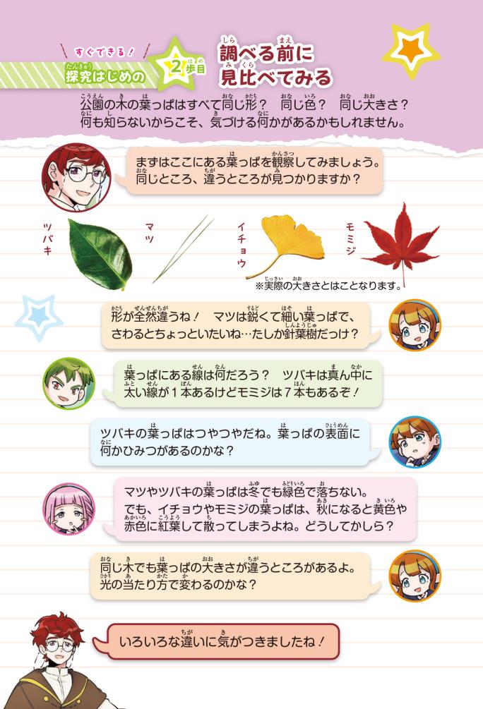 葉っぱの形を比べるなど、身近な「なぜ?」の見つけ方が分かる