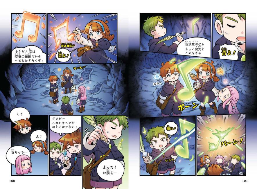 この物語の「魔法」のみなもとは、「自然の力」。主人公たちは立派な魔法使いになるために、科学などの知識を学んでいきます。