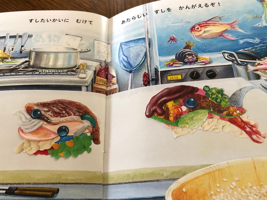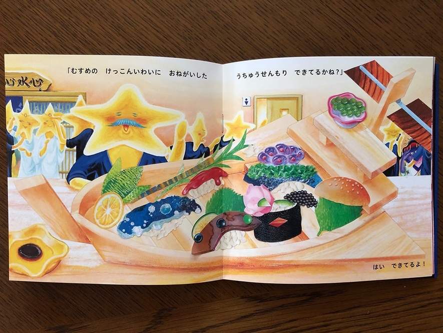 何と言ったって、宇宙一の寿司を決める大会に参加するための、新作寿司ですから! 遠い惑星から挑戦者がくるかもしれないし、もう、何でもありだよね、と子どもたちはわくわく顔……。