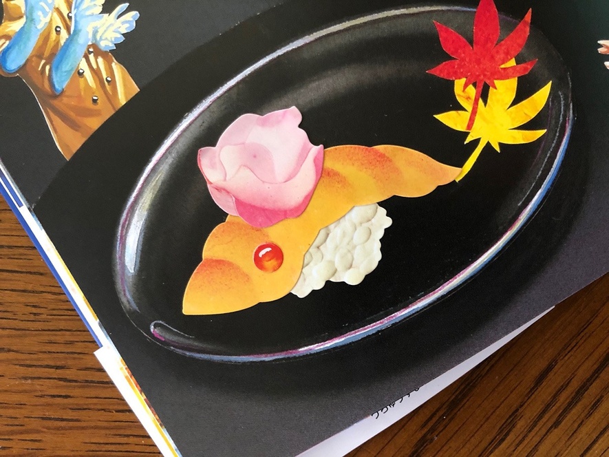 「さいごは すきな すしを じゆうに つくってください」……というページで中1の子がつくったのが「ばえばえ」。ガリが薔薇の花みたい!