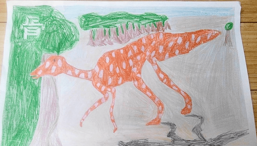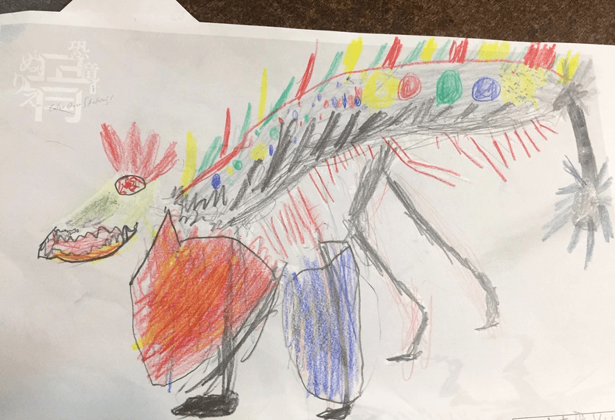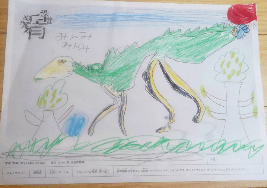 実際、オンラインで授業を受けてくれている全国の子どもたちに、このぬりえを紹介したところ、すぐに探究心に火がついて、いろんな自分なりの恐竜を表現してくれる子たちがたくさんいました。