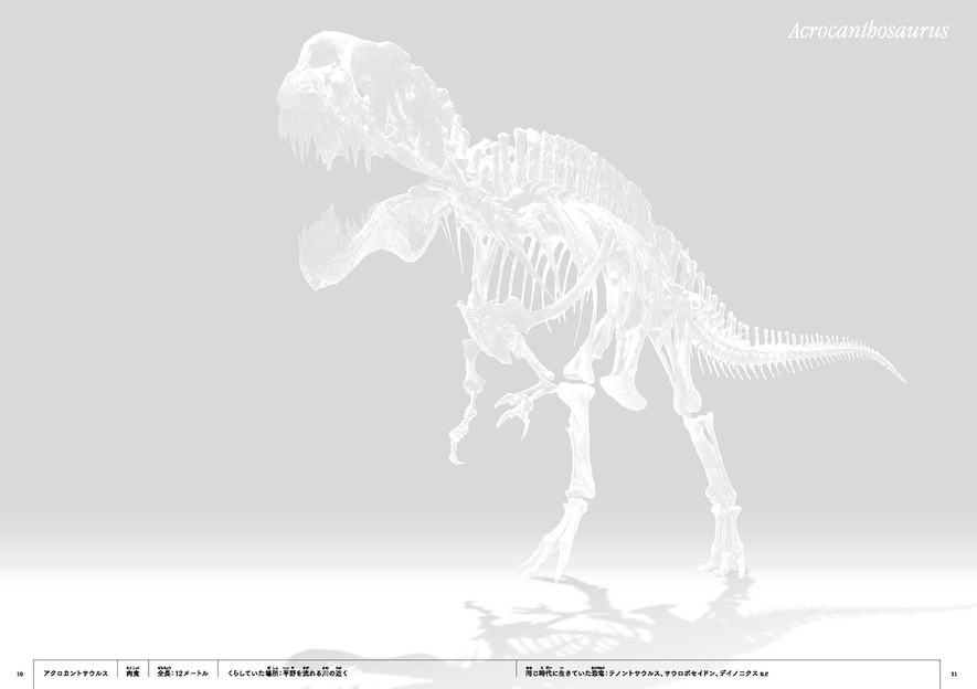 ページをめくるやいなや子どもたちの興味を惹きつけたこの『恐竜 骨ぬりえ』は、恐竜の白い骨格だけ描かれたページが続きます。そしてその下に、恐竜の名前、食性、全長、くらしていた場所、同じ時代に生きていた恐竜といった情報が書かれています。