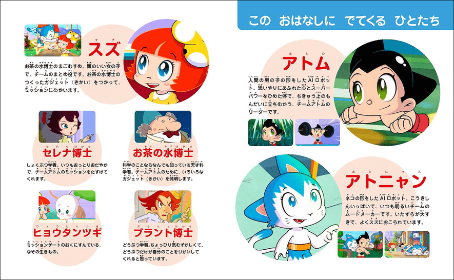 アトム、お茶の水博士の孫娘スズ、アトニャンの3人組で問題解決!