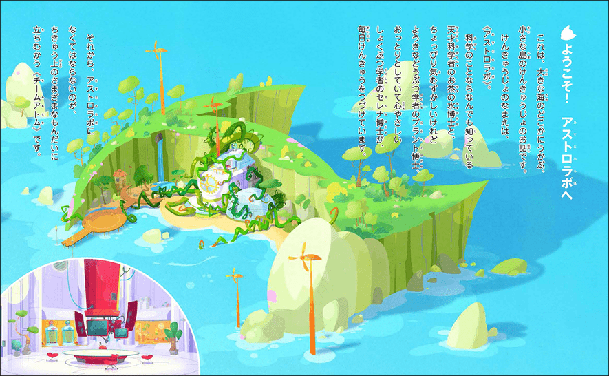 チームアトムの本拠地となる「アストロラボ」は、どこかの海に浮かぶ小さな島にあるそうですが、絵を見るだけでもわくわくしちゃう。1人で想像を広げながらじっくりページをめくる楽しみ方もいいですよね。
