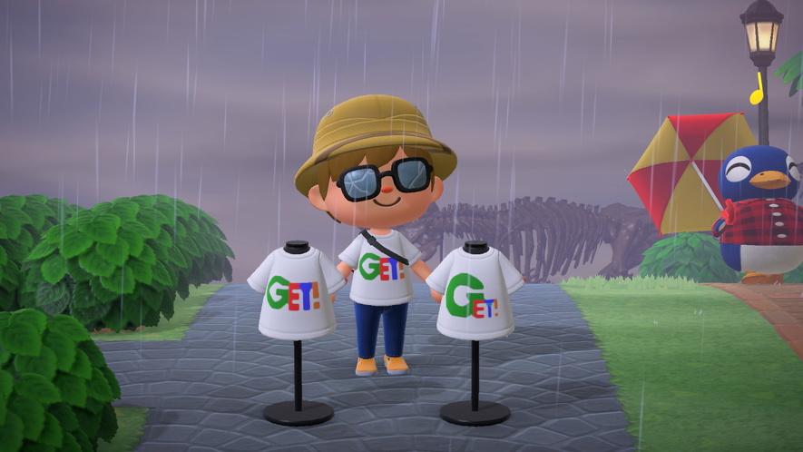 そうなんです。ゲットくん、GET島を建設しながら、なんとTシャツまで作っていたんです。「G」の大きさが違う2枚のTシャツ。どっちにするかはまだ考え中とのこと。こちら決まった方を、次回の夢見で公開します! ぜひ、みなさん受け取りにきてくださいね。もちろん、島の建設も順調に進んでいますよ。