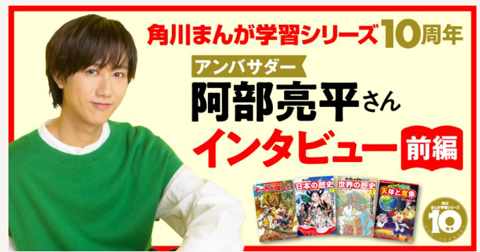 角川まんが学習シリーズ10周年キャンペーンのアンバサダーに就任した阿部亮平さんのインタビューが堂々の第1位に! Snow Manきっての勉強家の阿部さんが、自身で感じた角川まんが学習シリーズの魅力について語ります。