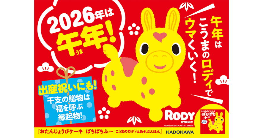 イタリア生まれのバランスボールトイ「ロディ」は、カラフルでかわいい〝こうま〟のキャラクター。この絵本では、ロディと一緒におたんじょうびケーキを作りながら、「トントンして」「ふ〜っとして」など、子どもが自然に体を動かして物語に参加できる仕掛けが満載です。