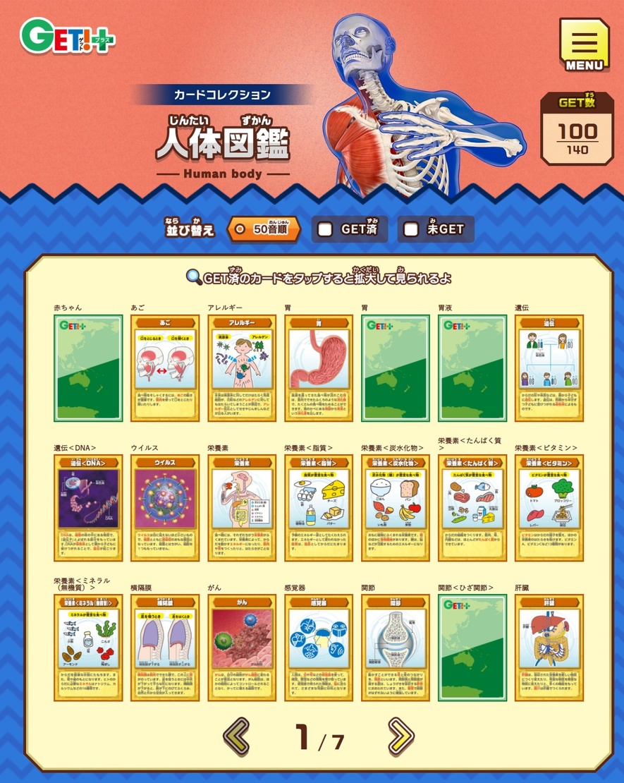 このサービスでは、図鑑の紙面を読み込むことで、カードが追加され、自分だけのオリジナルの図書館を作ることが出来る。自ら図鑑とスマホやタブレットを使って、人体の部位の働きや場所などを関連付けながら、学習していく。GET+では、動画やイベントの紹介などもされており、紙の図鑑にとどまらない学習を行うことが出来る。コンテンツは増えるようなので、長く使うことが出来る図鑑であり、学校の学習とも合わせて使うこともできる。コロナ禍で体験型学習が減り、保護者の方も出かけることに不安がある状況であるため、このような家庭でできるオンラインでの体験型学習は、「コロナ禍だからできない」ではなく、「コロナ禍でもできる」学習である。このような学習を家庭でも行うことで、子どもたちの学ぶ意欲は落ちることなく、今後の学校教育にもつながっていくだろう。