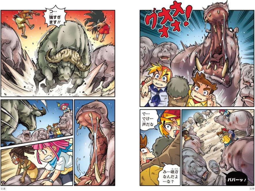 オールカラーの大迫力まんがを読むうちに、野生動物の知識がどんどん身につく! 大人気の学習まんがシリーズです。中でも不動の人気を誇る「サメvsメカジキ」「ヘビvsワニ」「クジラvsダイオウイカ」のバトルが楽しめます。