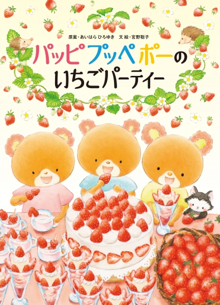 「くまのがっこう」シリーズのあいはらひろゆきさんの原案、『いちばん しあわせな おくりもの』でリブロ絵本大賞受賞の宮野聡子さんの文・絵による『パッピプッペーポーのいちごパーティー』。