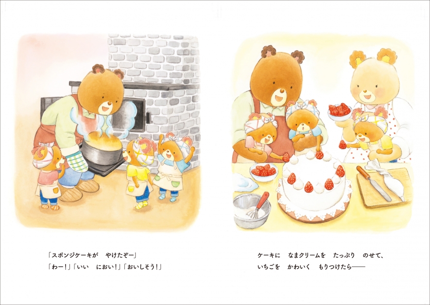 こぐまの3きょうだいが力を合わせて、いちごを育て、いちごケーキやパフェを作ります! いちごの生長の様子も描かれ、食育にもぴったりな絵本です。