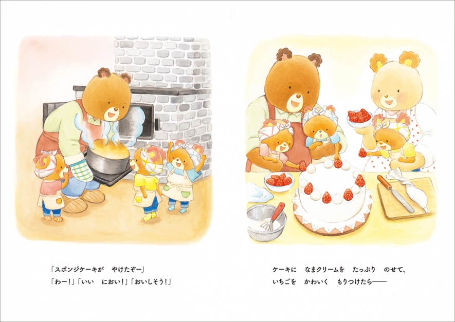 いちごの季節に、いちごの生長の様子もわかり、いちごのデザートを親子で作りたくなる絵本です。