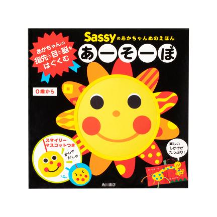 いつもにこにこ、左右対称のはっきりした顔、白と黒や赤などのコントラストの強い規則的な模様。発達心理学を研究し、デザインされたSassyのキャラクターとグラフィックが、赤ちゃんの目を通して、心と脳を育みます。