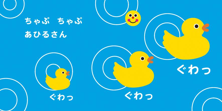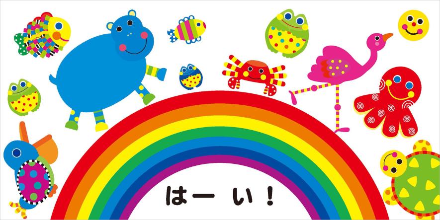 ふらみんごさん、かばさんなど、水の中に住むいきものたちが、Sassyらしいカラフルな色&模様のイラストでたっぷり登場!「おみずがだいすき だーれ?」「はーい!」のかけ声で、お風呂デビューもばっちり。