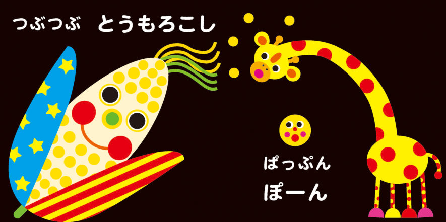 「もぐもぐ」「あむあむ」と口を動かす音、「じゅわ じゅわわー」「ぷちぷち」など素材の触感を感じさせるオノマトペもいっぱい。