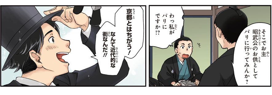 そして転機が訪れ1867年、慶喜の弟・徳川昭武に同行してフランスを訪れた栄一は、パリの近代的な進歩を目の当たりにして感銘を受け───