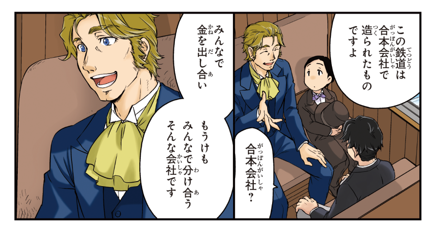 同時に人々がお金を出し合ってつくる合本会社の可能性に心ひかれていったのです。